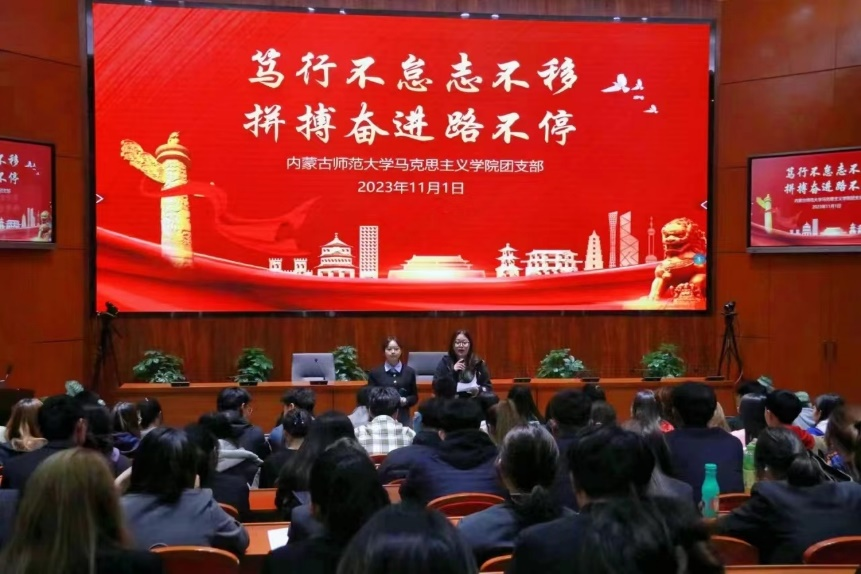 3.2023年11月1日,为深入贯彻二十大精神,深刻领悟习近平新时代中国特色社会主义思想,深入学习“两个确立”的决定性意义,增强“四个意识”、坚定“四个自信”、做到“两个维护”,米兰milan官方网站2022级思想政治教育二班团支部于信息楼报告厅开展“笃行不怠志不移,拼搏奋进路不停”主题团日示范活动。征途漫漫,惟有奋斗,党旗所指,青春所向,党旗飘扬,青春献礼。本次团日活动示范课主要以知识问答形式展开,共唱国歌,以此增强团员和青少年的爱国情怀和民族自豪感,厚植报效祖国、献身人民的情怀,大力弘扬爱国主义精神,引导团员青年自觉将个人梦想与国家前途命运和伟大复兴的中国梦紧密结合起来。此次团日活动让团员加强了认识,大大提高了团员自身的思想政治水平和能力,并使同学们真切意识到要坚持党的领导,坚持爱国主义,坚定理想信念,勇于担当使命,不负时代的要求、人民的期待!